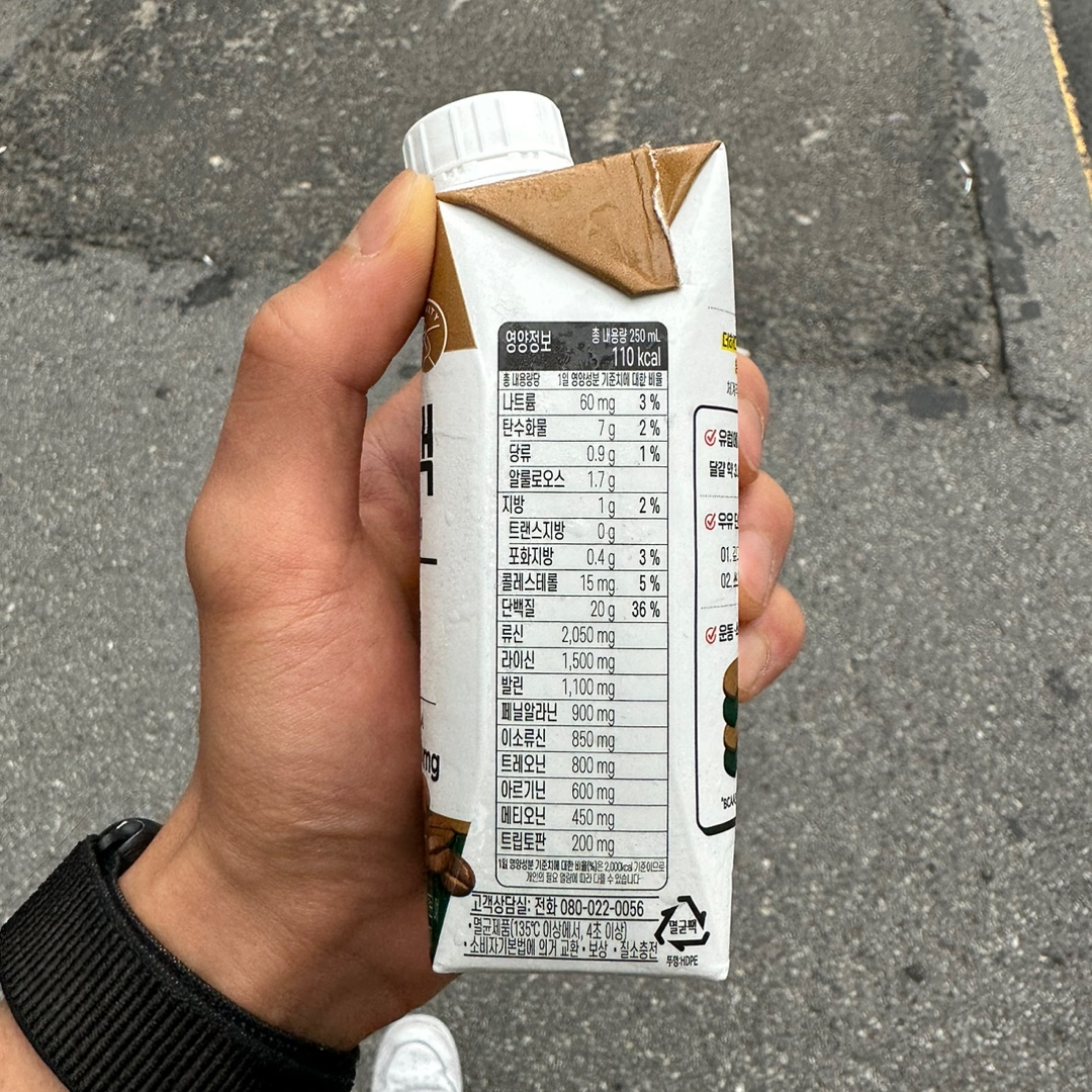 약간 2% 아쉬운 커피우유 느낌인데 식단관리 하는데 이 정도면 나름 최고의 맛이라고 할 수 있을 거 같아요.