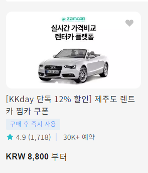 그럼 아래와 같은 8,800원 제주도 렌트카 쿠폰을 확인하실 수 있습니다.