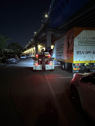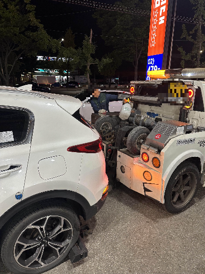 견인 시, 기사님 렉카로 견인을 걸고 함께 이동합니다.
